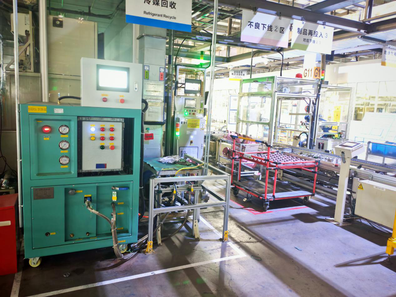 Our high accuracy full automatic refrigerant charging machine for various refrigerant like R134a, R410A, R22, R1233zd in the production line, all because of the excellent performance of our CM8600 refrigerant charging machine.